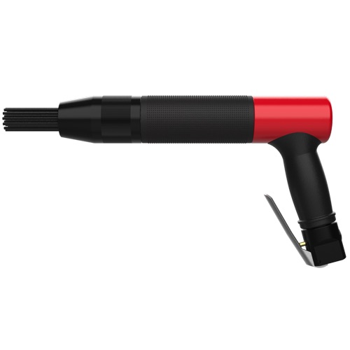 Пистолет игольчатый пневматический вибро-защищенный BM-2413NS с пистолетной рукояткой обеспечивающей удобный хват - инструмент предназначенный для обдирки и зачистки твердых поверхностей (металла, камня) от ржавчины, старой краски, окалины, сварных брызг и других сильных загрязнений. Также может применяться в узкоспециализированных целях, например для придания шероховатости поверхности металла. В качестве рабочего инструмента используется пучок игл разного диаметра, обеспечивающего особую эффективность при обработке в углах или неровных поверхностях. Диаметр поршня 23.6 мм