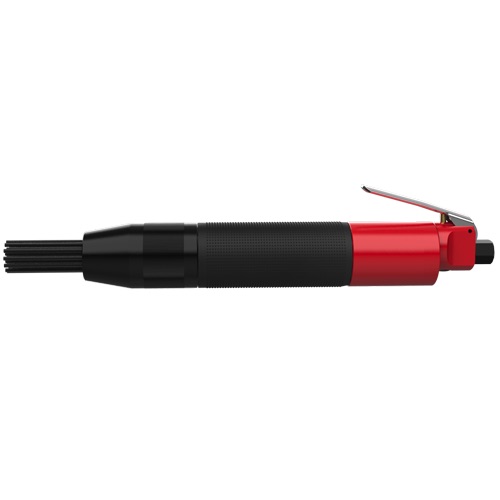 Скалер игольчатый пневматический с вибро-защитой BM-2414NS прямой формы с удобным хватом - инструмент предназначенный для обдирки и зачистки твердых поверхностей (металла, камня) от ржавчины, старой краски, окалины, сварных брызг и других сильных загрязнений. Также может применяться в узкоспециализированных целях, например для придания шероховатости поверхности металла. В качестве рабочего инструмента используется пучок игл разного диаметра, обеспечивающего особую эффективность при обработке в углах или неровных поверхностях. Диаметр поршня 23.6 мм